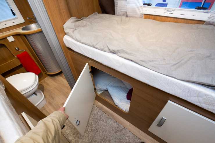 I Rimor Sweden Edition finns en enkel men smart lösning. Det här är ett bra sätt att utnyttja utrymmet under sängarna.