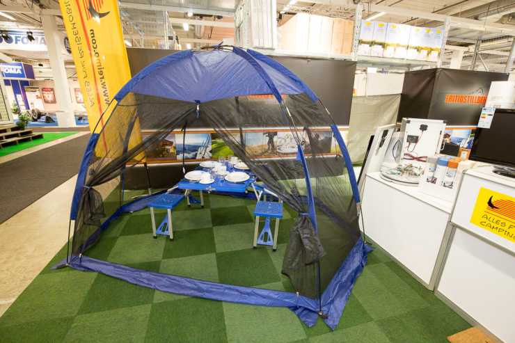 I Reimos monter hittar vi ett myggtält. Perfekt för barn att leka i om myggplåga råder.