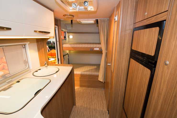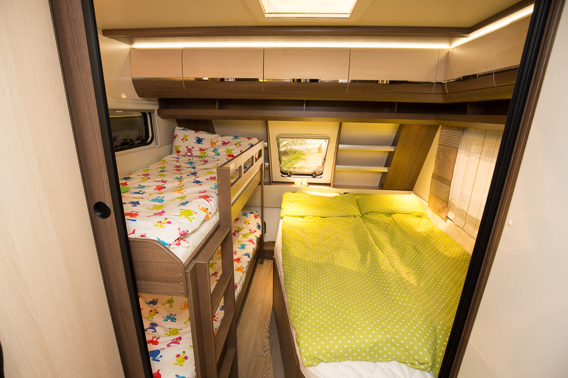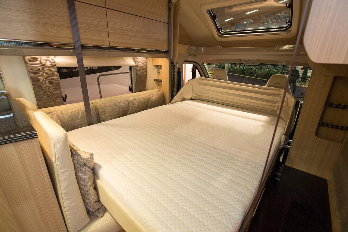 Sängen är orienterad i bilens längdriktning och blockerar således inte entrén. Dessutom kan sängen hissas långt ner vilket gör att ingen stege behövs.