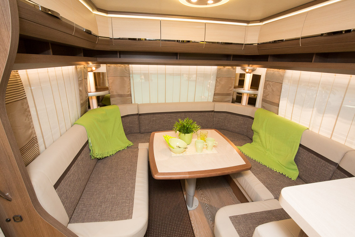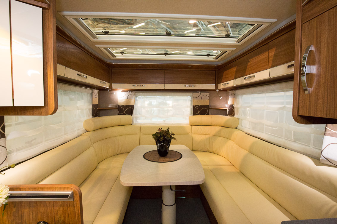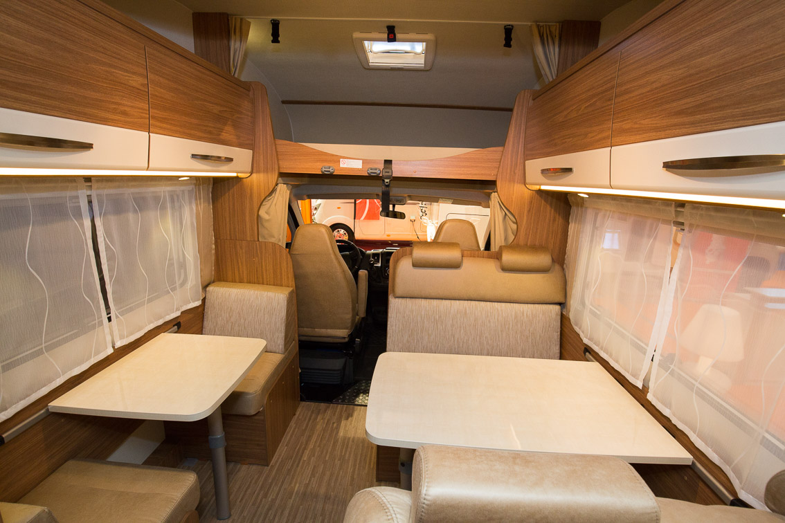 Carado A 461 är ett bra exempel på en barnvänlig bil. Två separata sittgrupper är praktiskt för då kan barnen bygga lego eller rita på det ena bordet samtidigt som det dukas på det andra.