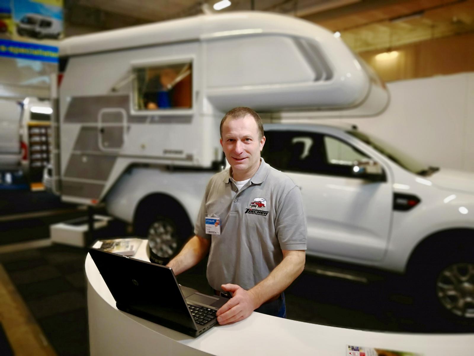 Den tredje camperutställaren vi stöter på under rundvandringen är Tischer från Tyskland. Nils Golay är svensk återförsäljare.