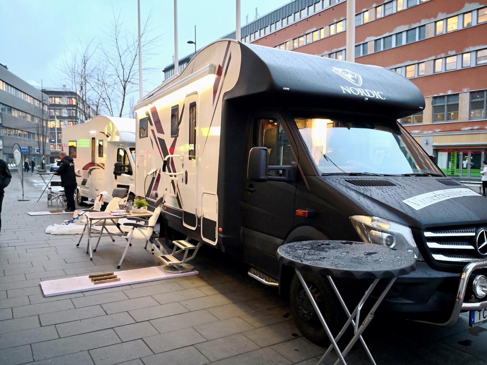 Nordic valde att ställa sina vinterisolerade husbilar utanför mässans huvudentré. Ett bra läge för besökarna att verkligen känna hur de klarade kylan.