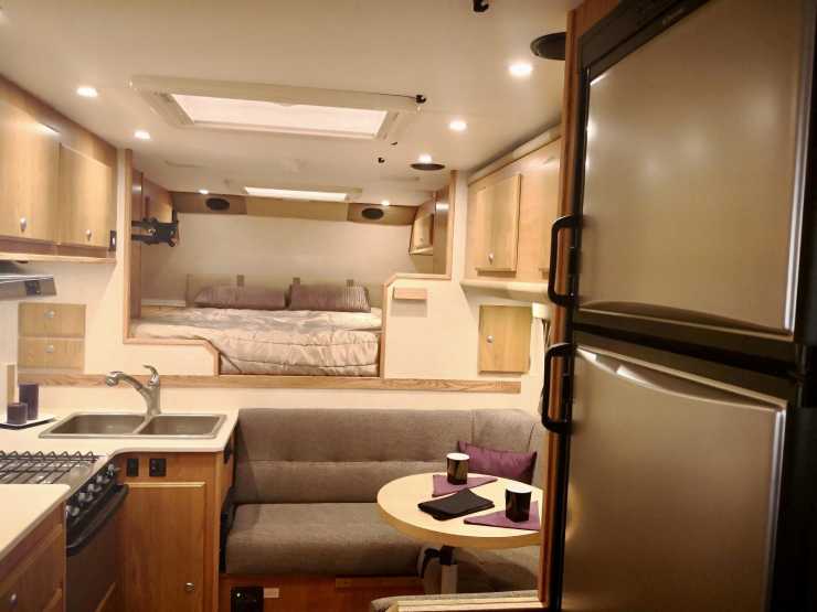 U-soffa, ugn, elverk, enorm Dometic kyl/frys och mycket annat. Denna modell har både luftburen värme och vattenburen Alde värmare.