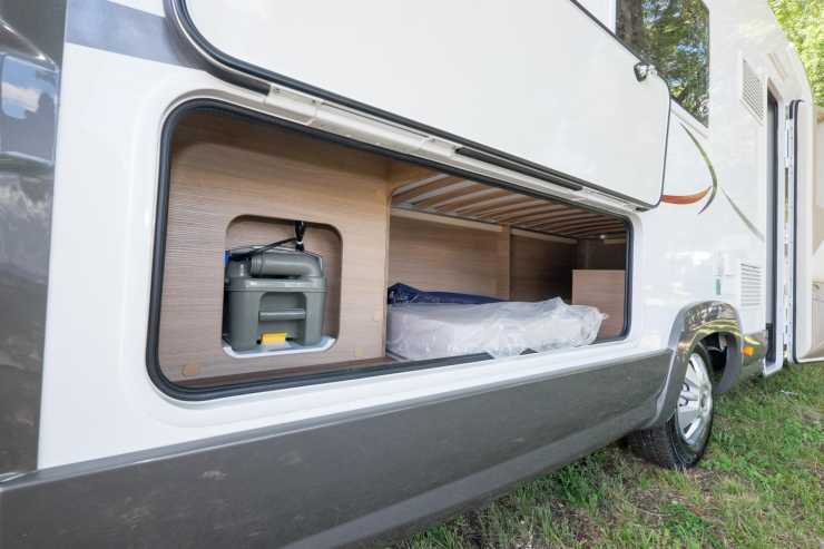 Tömning av toalettkasetten görs via lastluckan.