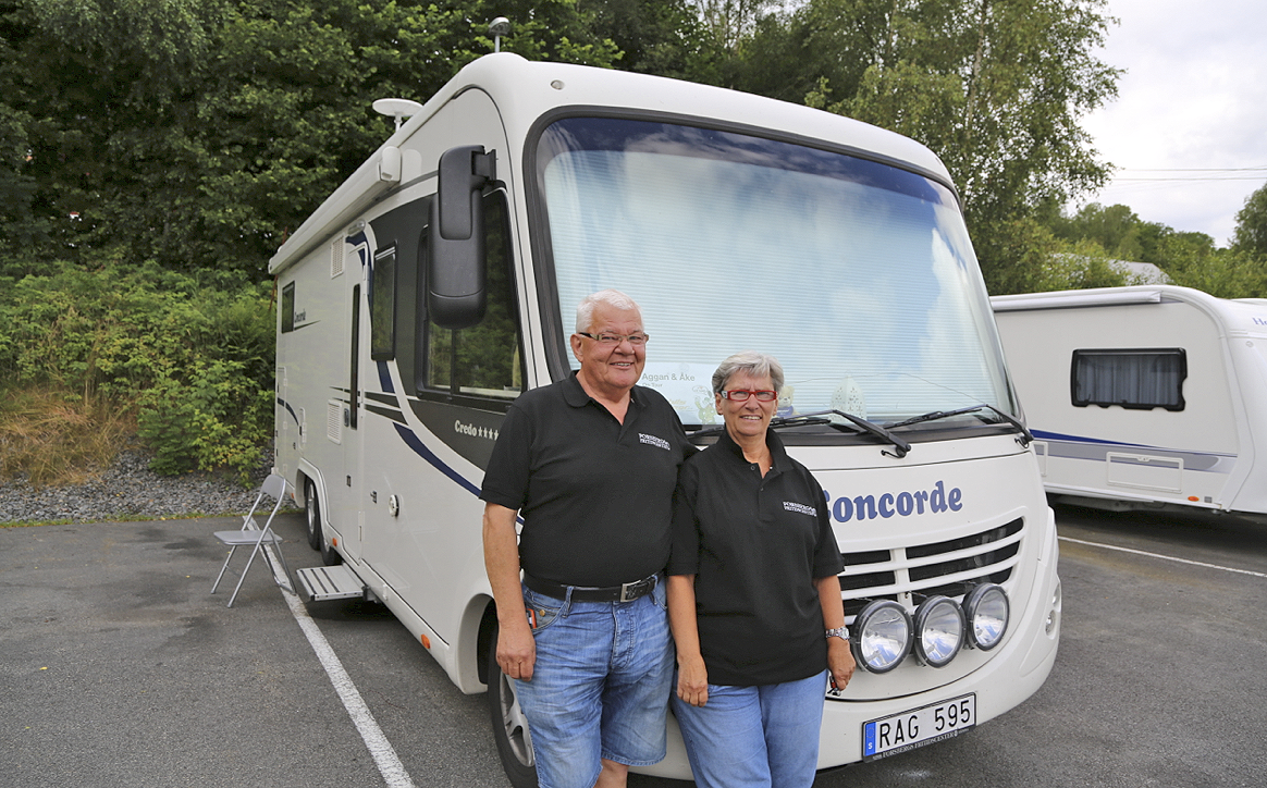 Åke Tranberg och Agneta Jonsson har bott heltid i husbil de senaste tio åren och aldrig längtat till hus eller lägenhet. De har haft husbil i 20 år och under denna tid ägt 11 husbilar och nu är det en Concorde Credo de bor i. Deras Credo är fyra år gammal och har gått 10.000 mil och förra vintern bodde de i Spanien. – Vi brukar hjälpa Forsbergs på Elmiamässan och nu bor vi på deras bakgård och hjälper till lite i butiken.