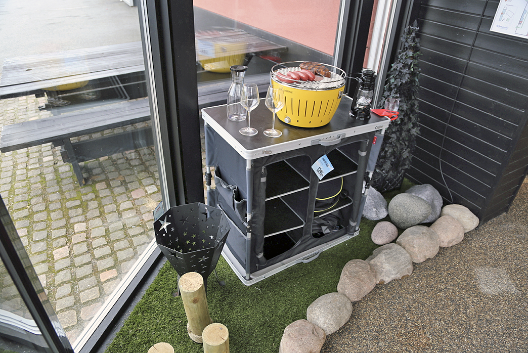 Snygg förvaringsbänk eller utekök till förtältet kostar 1295 kr.