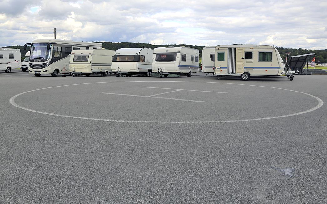 Stina Johansson och Pia Lundberg från Ekenässjön, Vetlanda, tävlar i orientering och i Borås pågår O-Ringen där massor med husvagnar och husbilar samlas. – Vi bor i husvagnen under tävlingarna och kom hit för att leta reservdelar till den, men kollar samtidigt på andra vagnar.