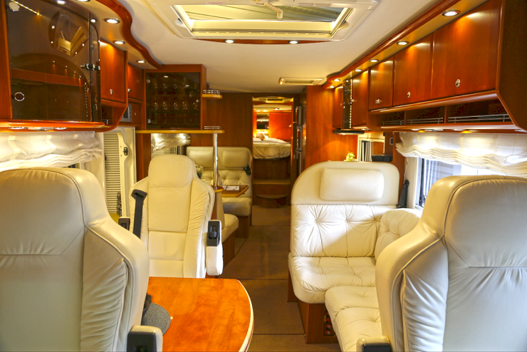 Concorde Liner Plus. Bara att kliva in i de största bilarna är en sevärdhet i sig. Här finns två sittgrupper, en med bar- eller skrivbord och lite längre bak en middagsdinett. Ännu längre bak tronar ett gigantiskt badrum och en queen-bed värd namnet.