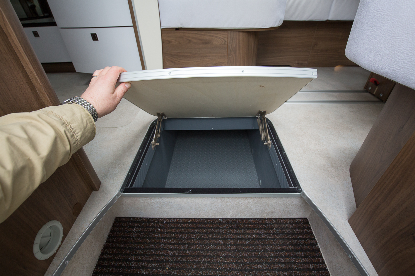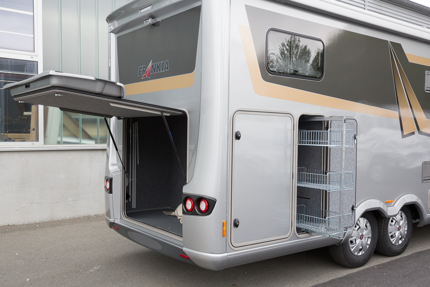 Generöst tilltagen och lättåtkomlig förvaring i dubbelgolv och garage är några av Frankias ledord.