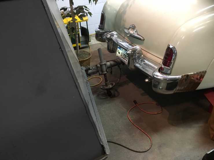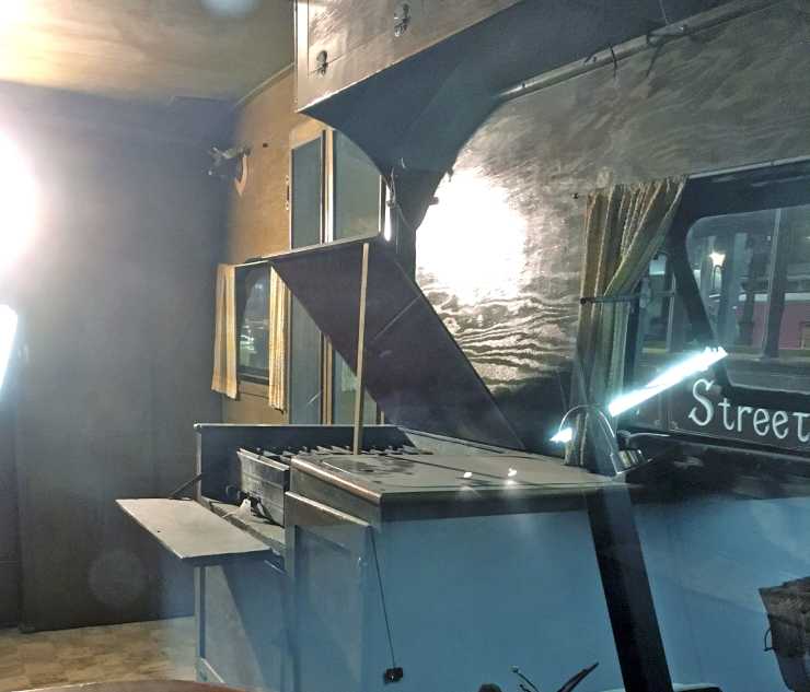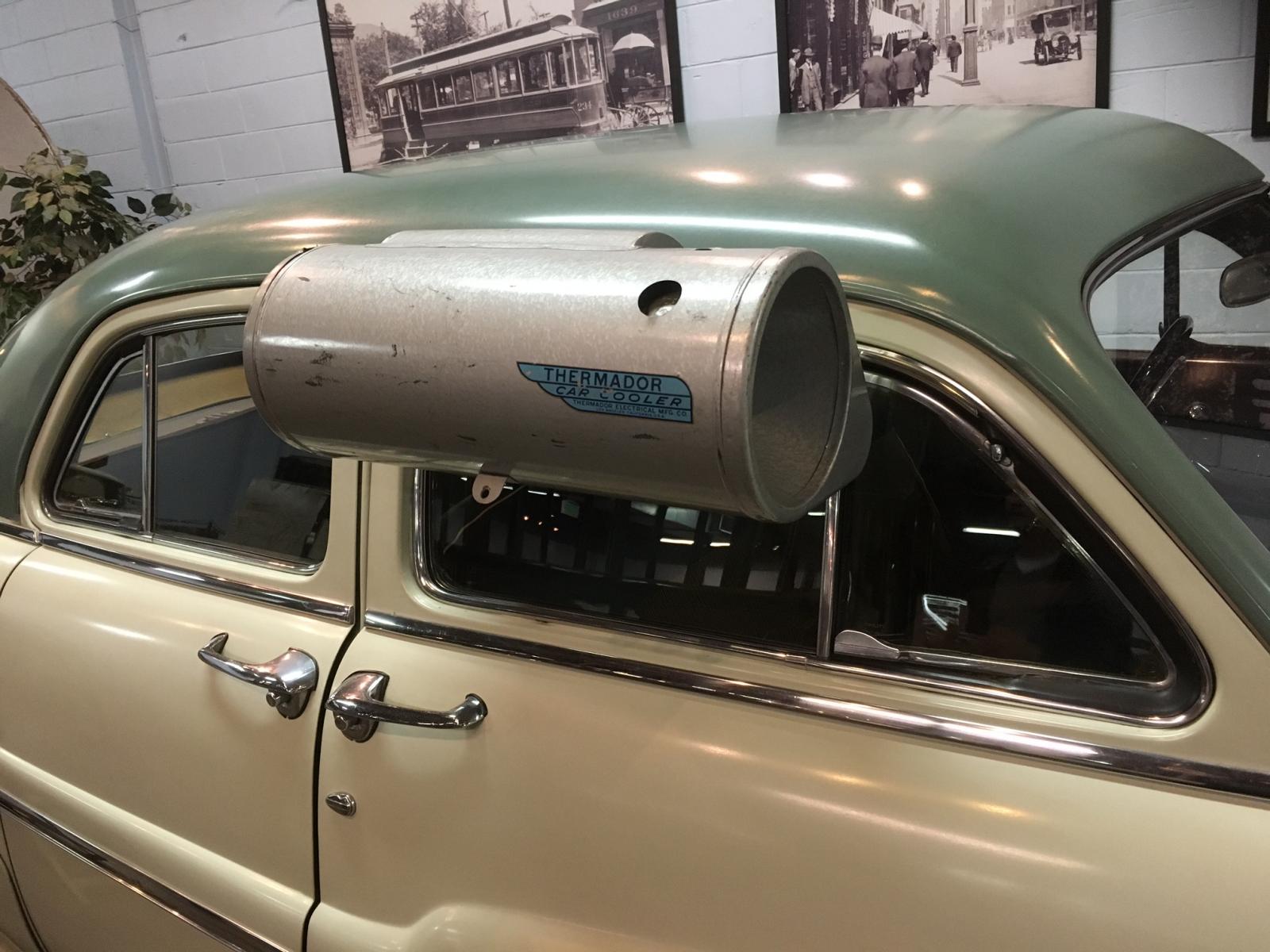 Museets dragbil som står framför vagnen är försedd med en form av "air condition" eller fläkt som drog in en svalkande luftström.