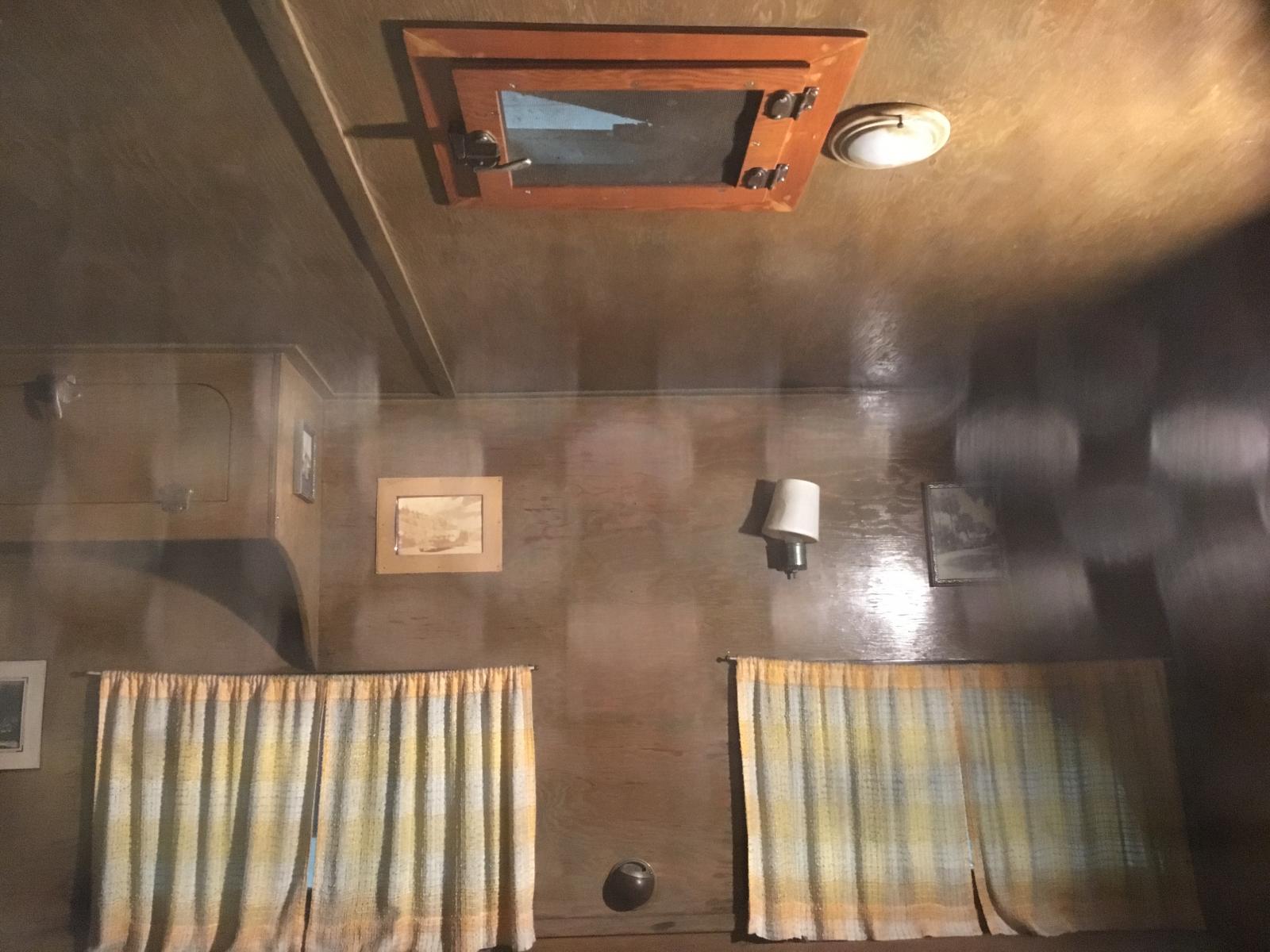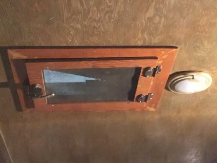 Öppningsbara fönster och väggar av masonit som målats med aluminiumfärg. Vagnen har gått över 10.000 mil och klarat ett flitigt användande från 1937 till 1970.