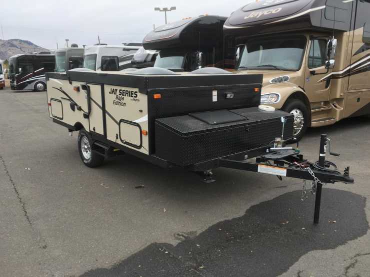 Denna Jayco är faktiskt ännu smidigare och kan dessutom fällas ihop. Så här toppig blir den i uppfällt läge.