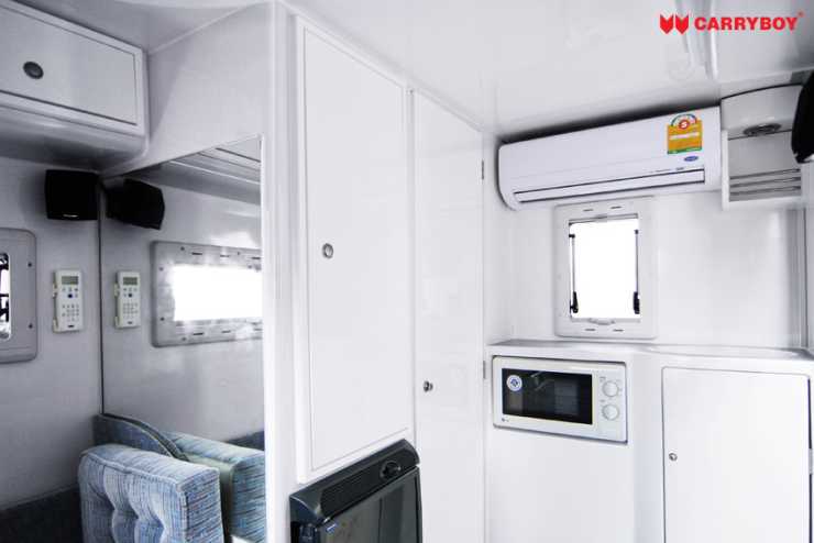 Viktigt är att stänga ute värmen och Carryboy har en AC som räcker till att kyla ned rejält. Värmepanna är mindre nödvändigt...