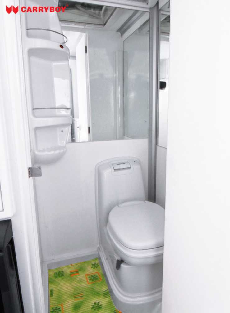 Badrum med toa från Thetford och duschmöjlighet.