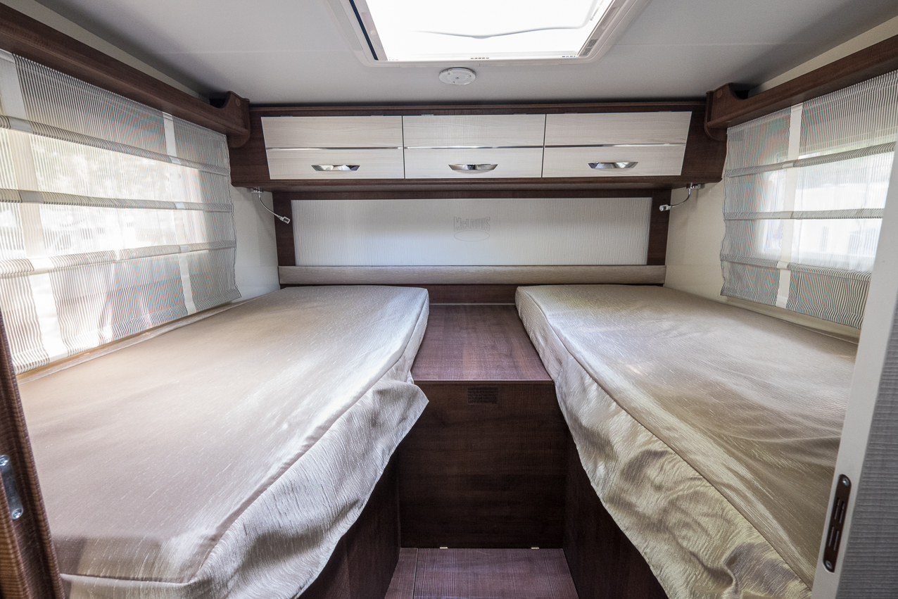 Modellnamnet slutar på G vilket står för garage och det finns tack vare att bäddarna är högt placerade i bilen.