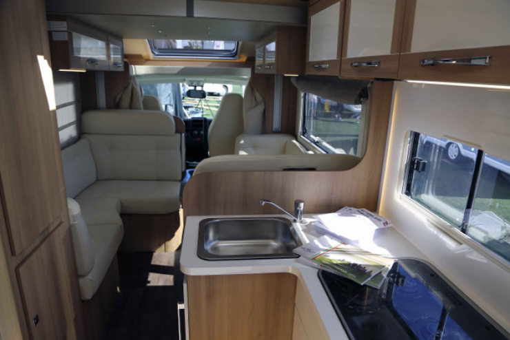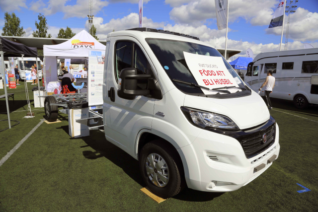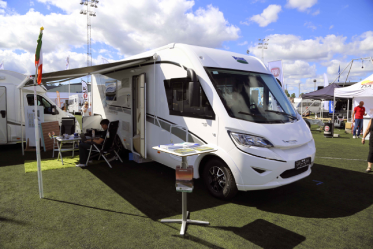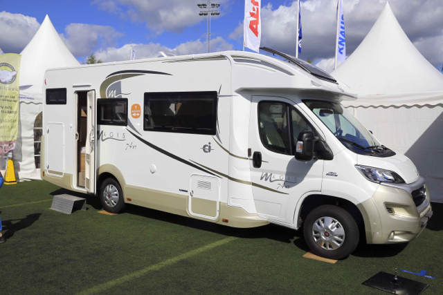 Ci visade en halvintegrerad husbil med sju bäddar. Våningsäng bak, taksäng och rejäl sittgrupp.