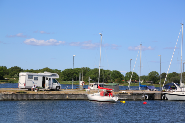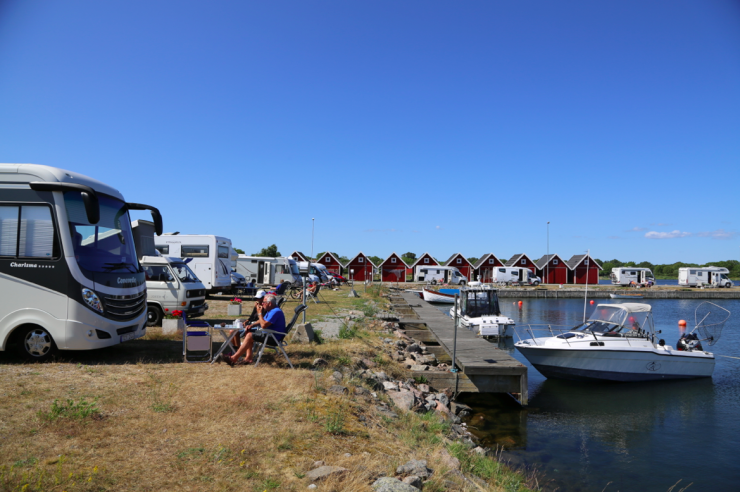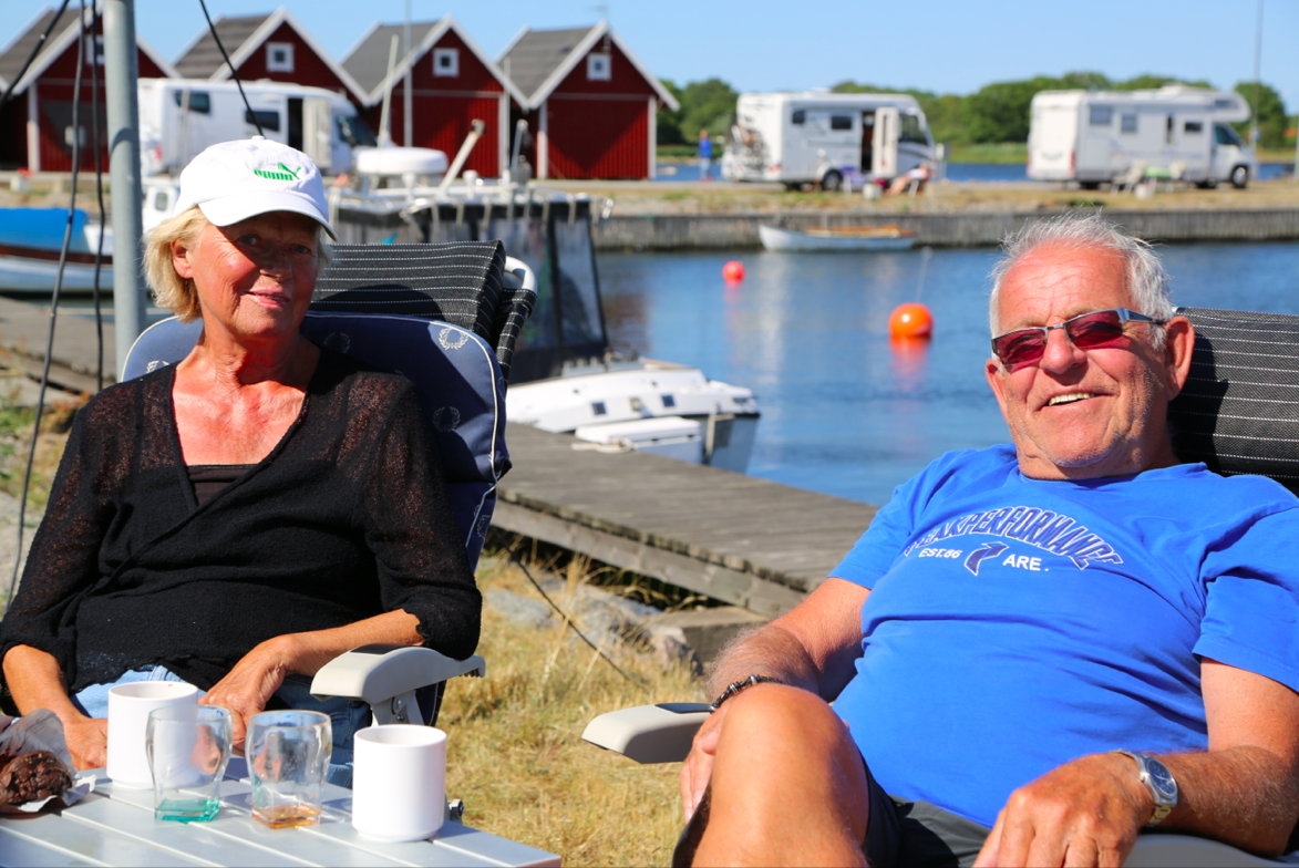 Ella-Maj och Sven-Ingemar Wallertz kör en Concorde Charisma och har varit i Sandhamn tidigare. – Det är så lugnt och skönt här och de har en jättemysig pub. Där ska jag sitta imorgon medan du ser på Ernst på tv, säger Sven-Ingemar och sneglar mot hustrun som skrattar.