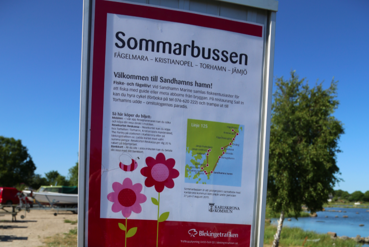 Sommarbussen går förbi marinan.