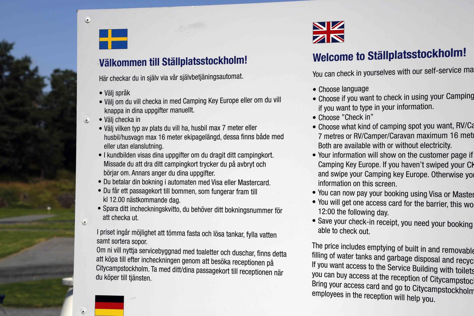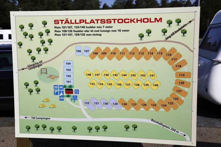 Ställplatsen ligger med gångavstånd från Flatenbadet. Med lokaltrafik tar det ca 40 minuter till city. Bussarna går 2-4 ggr/timme beroende på dag och tid. Viktigt dock att ha SL-kort då det inte säljs på bussen.
