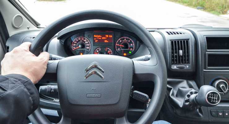 Förarmiljön känns igen från andra baserade på Fiat Ducato. Notera nya automatspaken.