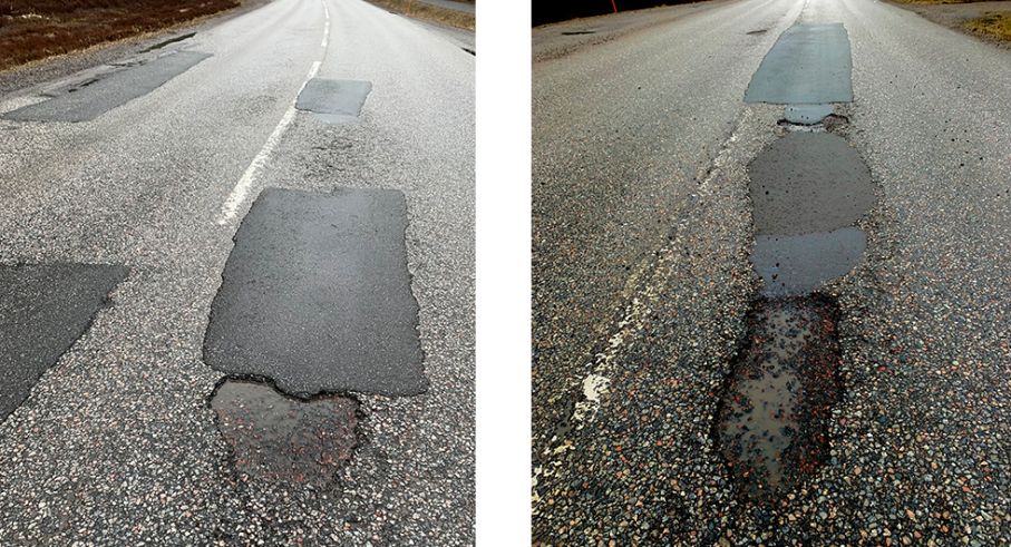 "Det lagas och lappas då och då. Men det som behövs är ju en asfaltering av hela vägytan. Vart tar våra bilskatter vägen?" Experten svarar.