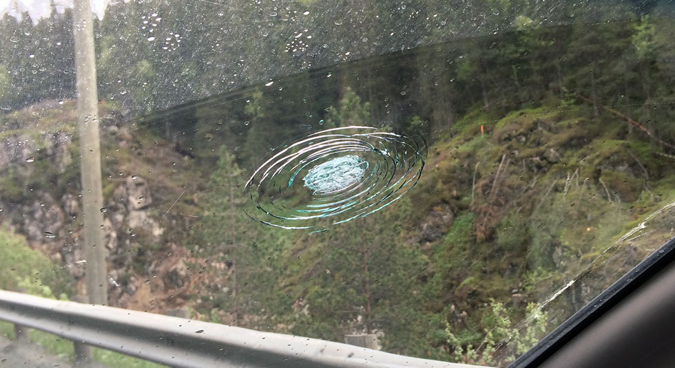 Om man däremot kört på en väg som sandats vid halka så kan däcken ha fler stenar i mönstret. Din bils hastighet och stenens storlek och tyngd har förstås betydelse när du möter en sten i luften. Vid 100 km/tim blir det en skaplig kraft. Men det är ju i stort sett omöjligt att undvika. Man kan ju inte gärna bestämma sig för att köra 50 km/tim för att slippa stenskott på en väg där 100 km/tim är tillåtet och körförhållandena är goda.