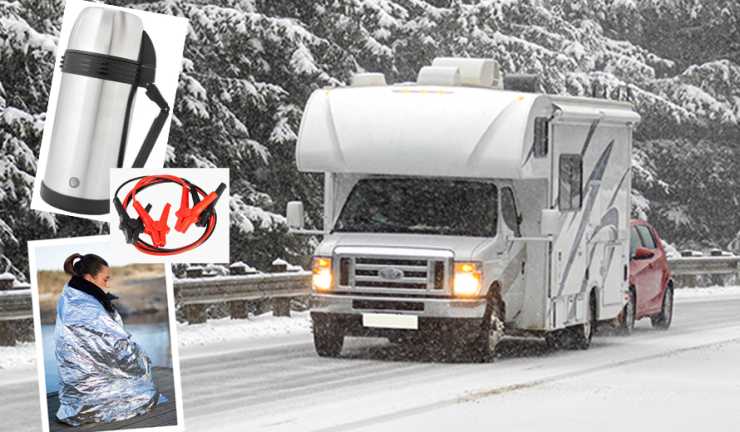 Här kommer tips på åtta saker som det är bra att ha med sig i husbilen eller husvagnen under vinterfärden: