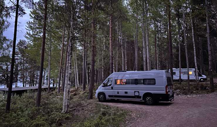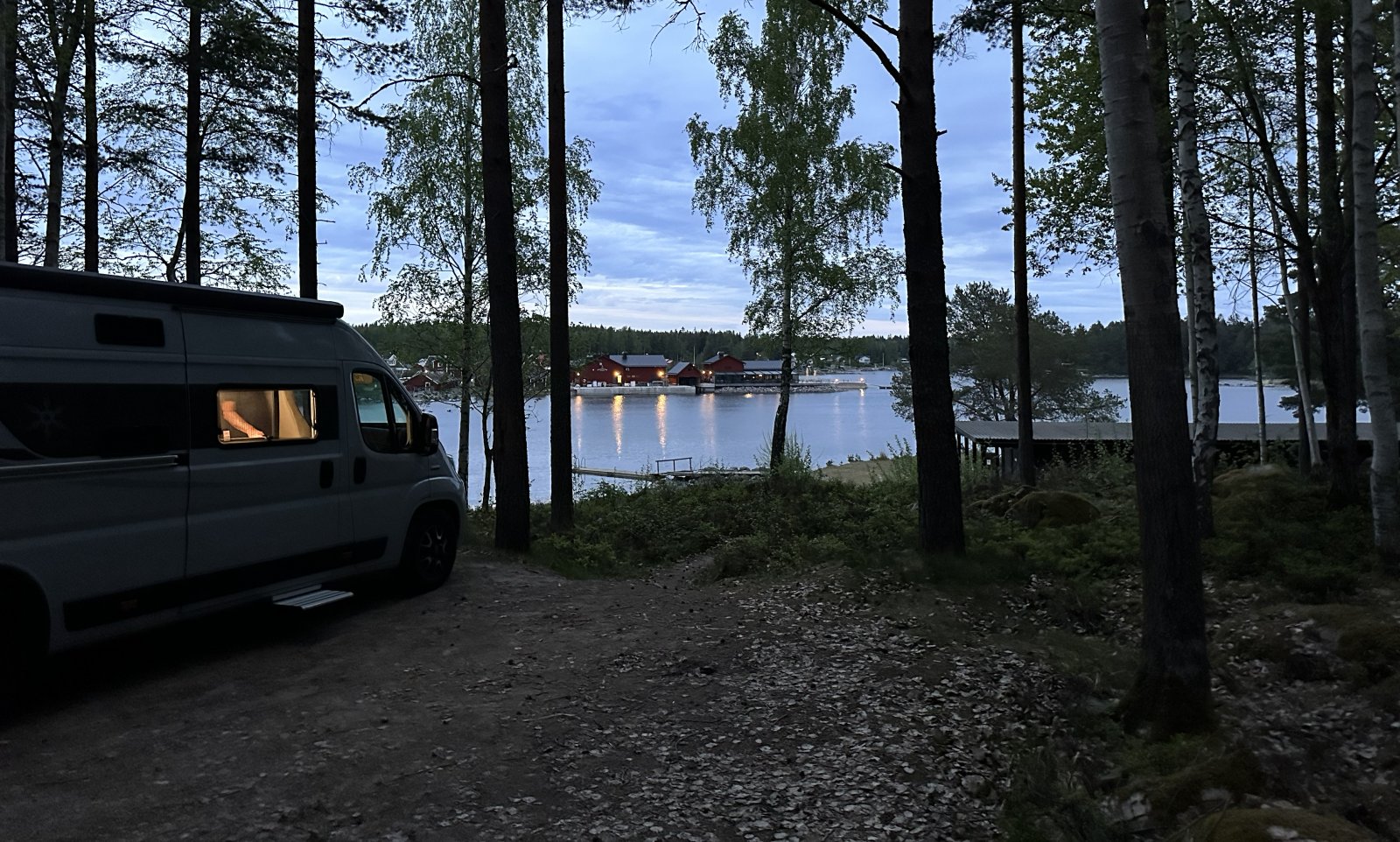 På hösten står parkeringar tomma vid badplatser och naturreservat. Som gjort för fricamping. Här vid Salthars badplats i Norrsundet.