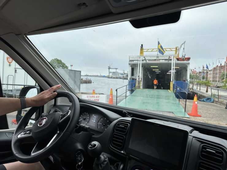 Att köra in husbil eller husvagn på färja kan vara nervöst.