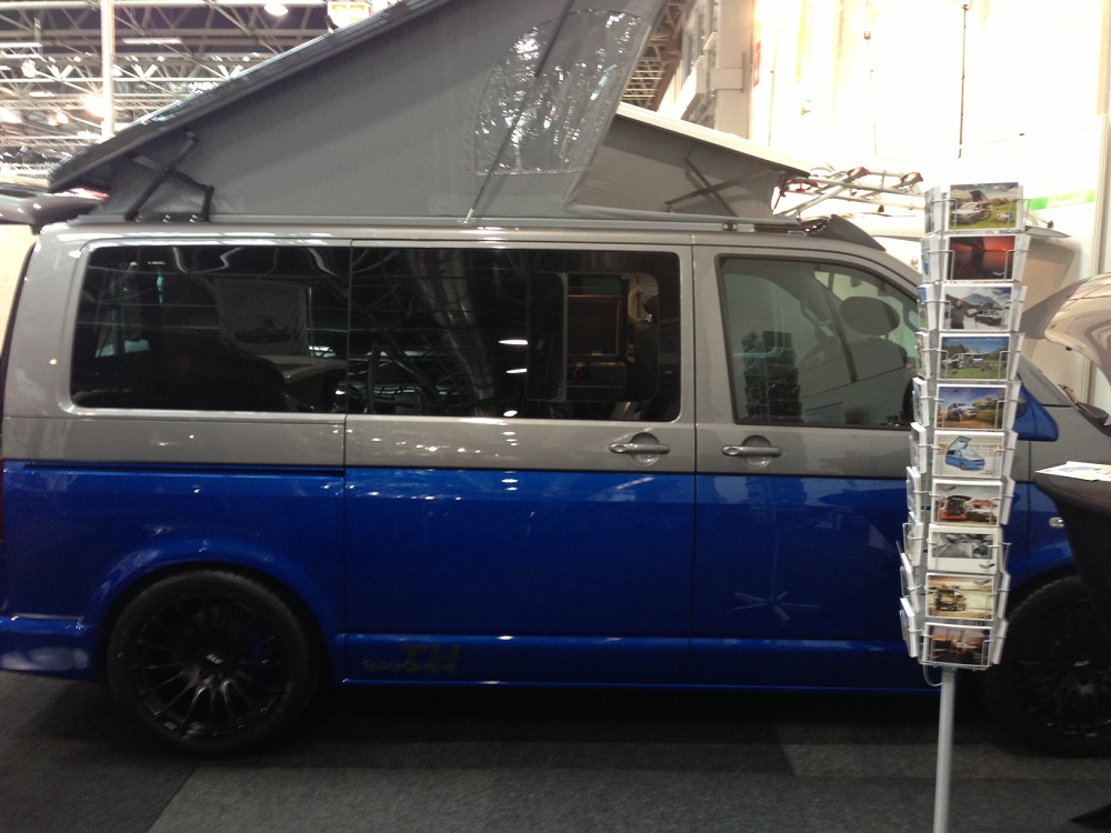 Det finns många sätt att väcka uppmärksamhet och tillverkaren SpaceCamper, som inte finns representerade i Sverige, bygger vanligen inredning till mer normala Volkswagenbilar. Just denna modell, som stod lite blygsamt undanskymd längs väggen i mässhallen, har dock 500 hästkrafter(!)