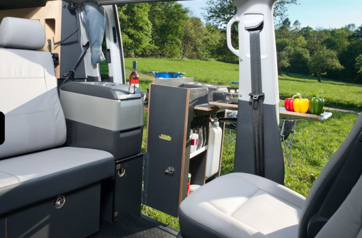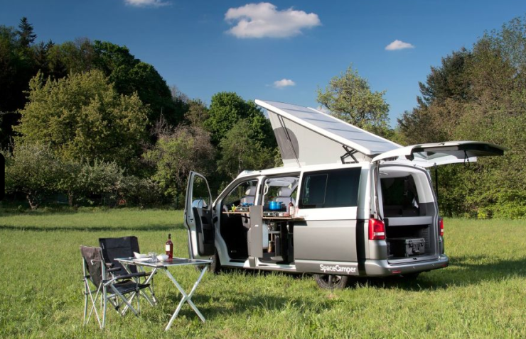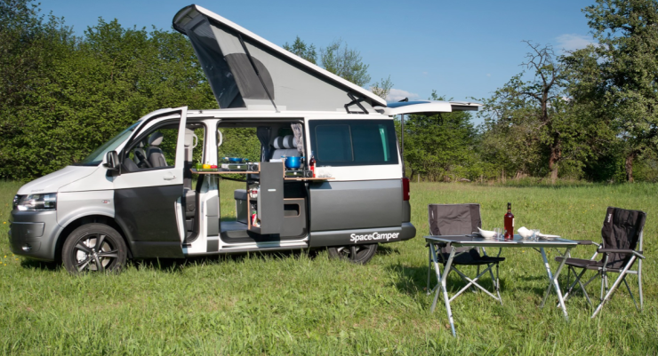 I övrigt vad gäller SpaceCamper ska vi även nämna att det i Sverige nästan okända företaget bygger modulinredningar till Volkswagen T5. Dessa kan tas ur när man inte vill använda bilen som husbil. Till 2014 lanseras en modul till femdörrars VW T5 med vridbart kök så att man kan stå utomhus och laga mat tack vare den femte dörren på vänster sida. Öppna skjutdörren på sidan - sväng ut köket och bänkskivorna och du kan förutom att njuta av en ergonomisk höjd även ha ett stort utomhuskök med två spisar och hoar. Vanligt i husbilar i den här storleken är att köket hamnar alldeles för lågt eller att man måste sitta på sidan om i en stol vid matlagningen.