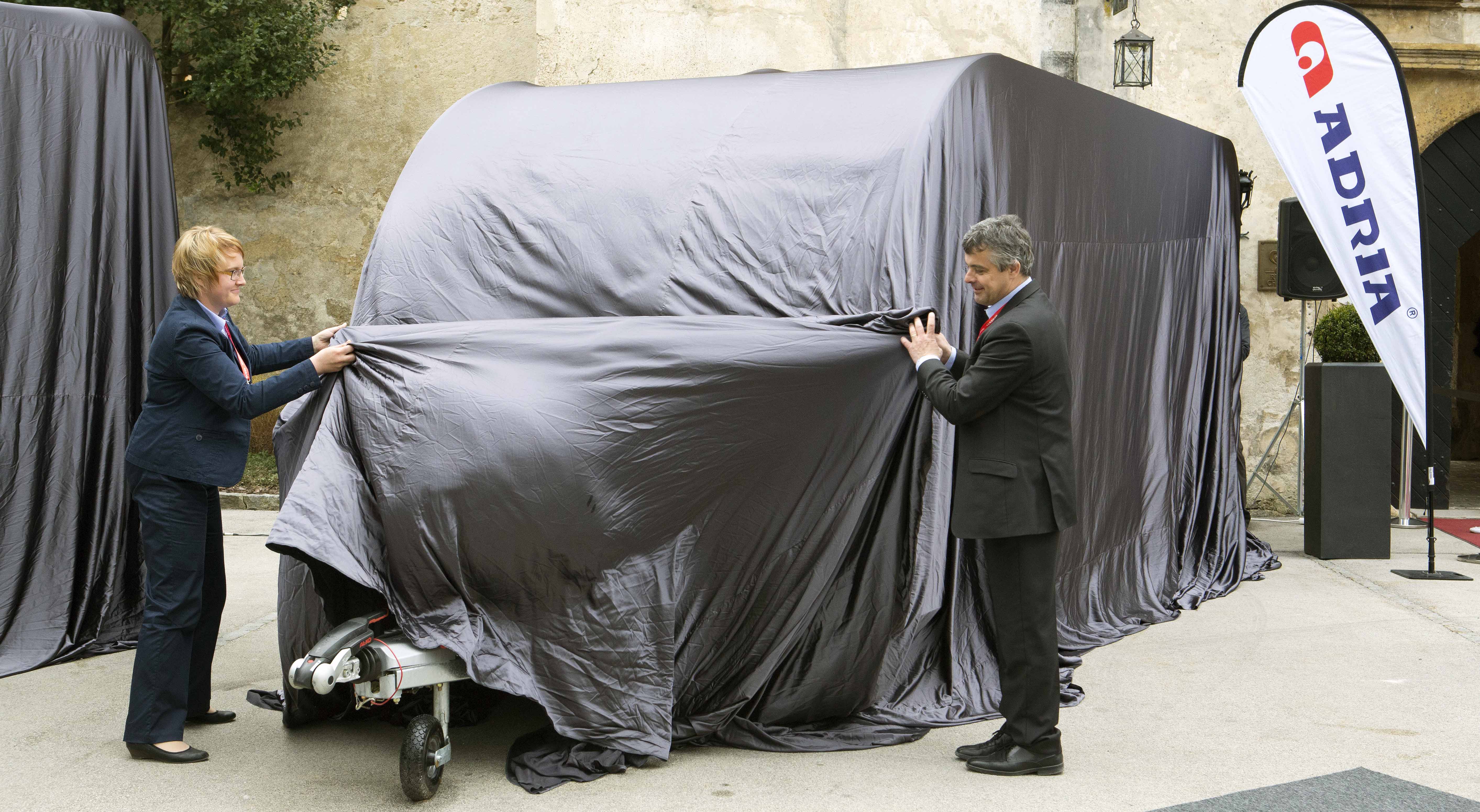 Även husbilsserien Adria Coral uppdateras men en mer slimmad yttre design. Övergången mellan Fiathytten och Adriabodelen har integrerats snyggare och invändigt är det ljust tack vare rejäla takfönster. Vid ingångsdörren finns tre svarta konsoler, den översta innehåller manöverpanel, den i mitten är en dockningsstation för exempelvis iPad med USB-uttag och ladduttag.