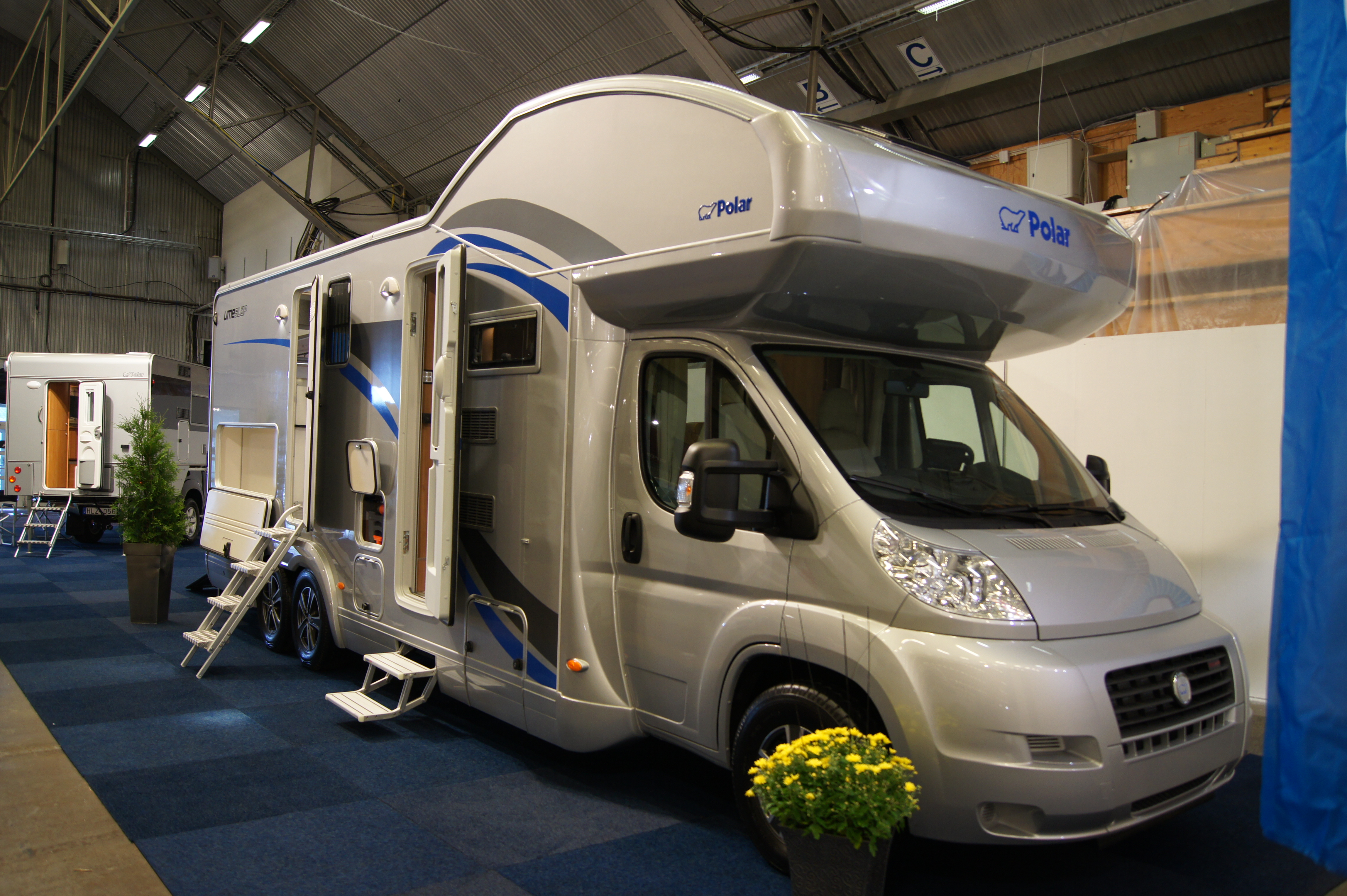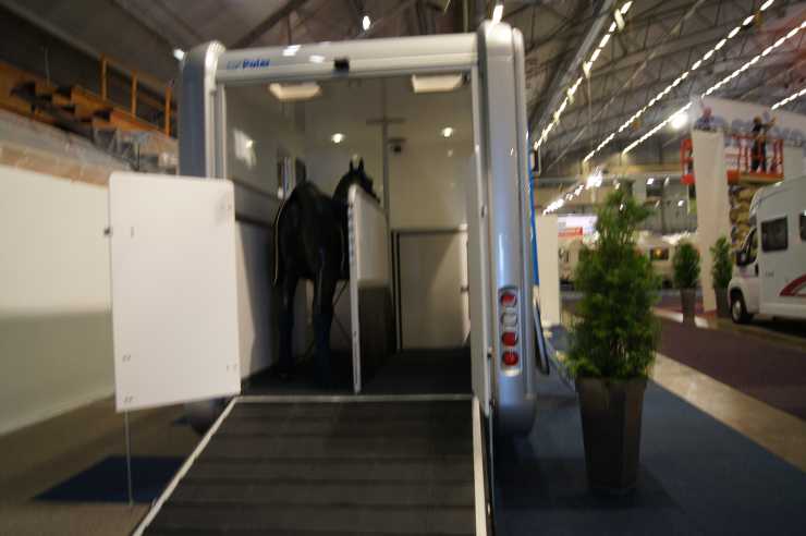 En av de stora nyheterna på årets Elmia Husvagn Husbil är denna svenskbyggda alkovbil, Polar Multi 800, som just nu visas i hall D i SoliferPolars monter, är specialanpssad för hästtransport men bilen ska även kunna användas till transport av motorsportfordon. Doroteabaserade SoliferPolar har byggt husbilen medan UmeSläp har utformat hästdelen. Den sistnämnda har plats för två hästar. Lastutrymmet är med andra ord rejält tilltaget - både framför hästbåset och på bilens utsida bakom hjulhusen. Interiört finns dubbebädd i alkovbilens keps, Dessutom ett stort ljusinsläpp i alkovens tak. Sittgruppen med matbord och två soffor är bäddbar till ytterligare en bädd. Köket är förhållandevis litet men funktionellt. Samma sak gäller för toaletten.