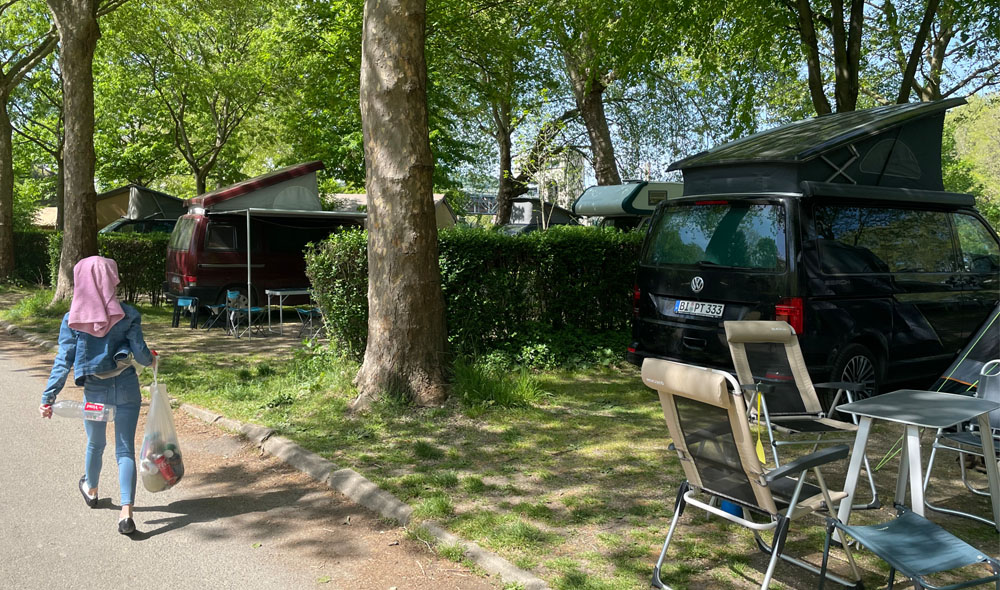 Plåtisarna med popup-tak står på rad på Camping de Paris.