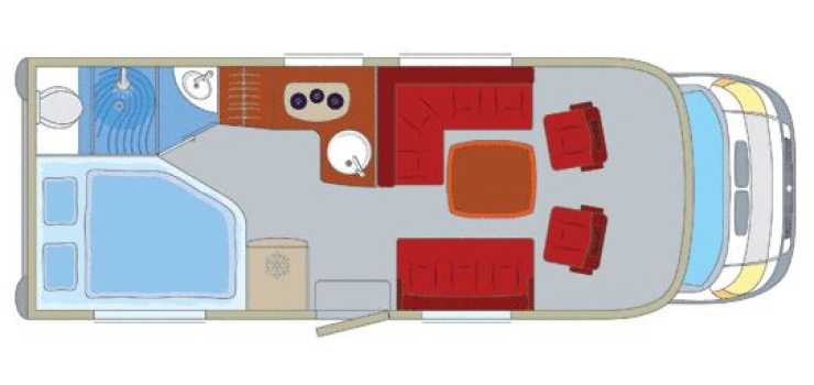 Den nya Profila återinför den klassiska planlösningen med sin längsgående bakre säng och hörnkök. Trots en total längd på endast 6,99 meter, finns det plats för en bekväm L-formad sittgrupp med en lång soffa på förarsidan.