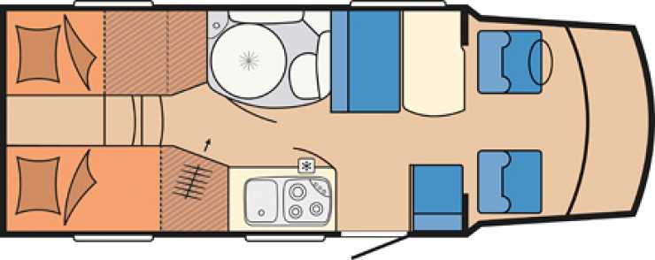Det är lite tuffare design som gäller, både på ut- och insidan. Inuti hittar du dynor i tyg Montana, bord och bänkskivor i Stone Grey och möbeldetaljer i antracit. Även förarmiljön är sportig med aluminiumdetaljer, läderklädd ratt och växelspaksknopp. Alkovbilen är 699 cm lång med en bredd på 234 cm (övre planlösningen), medan kompaktbilens mått är 669 cm med en bredd på 218 cm (undre planlösningen).