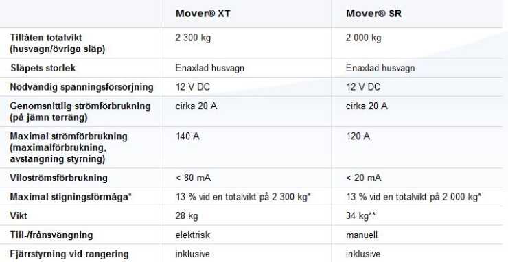 - Mekanisk nödfrånsvängningsfunktion: Om husvagnens batteri är helt urladdat eller defekt (specialnyckel ingår i leveransen)