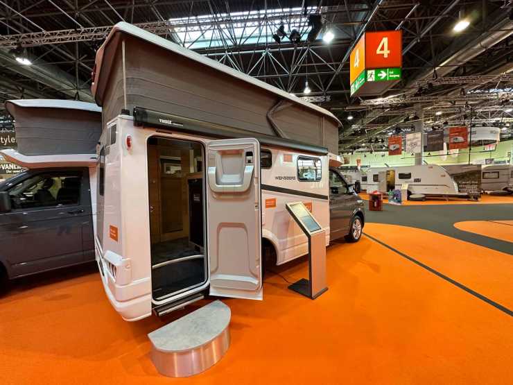 Det handlade om läckra campingbilen Bürstner Habiton, med både uppblåsbart taktält och baktält, lilla husvagnen Knaus Yaseo som anpassats aerodynamiskt och viktmässigt till elbil och Weinsbergs flirt med campingbilar, CaraLife 630 LQ.