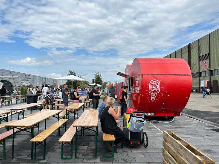Klart att snabbmaten på mässområdet säljs från något som liknar husvagnar.