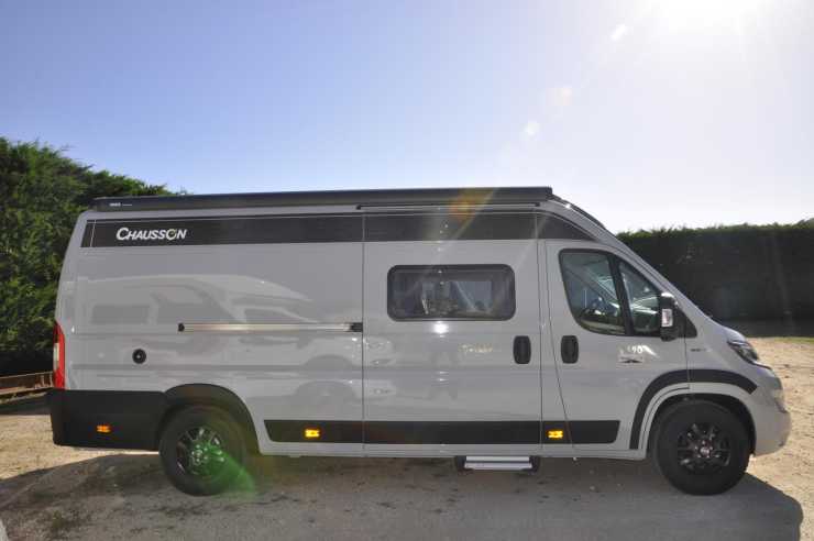 Nya Chausson V 690 är en van och plåtis byggd på Fiat Ducatos 6,36 meter långa och mellanhöga skåp. Mest spännande med modellen är den stora höj- och sängbara sängen som i nedsänkt läge mäter hela 190x190 cm.