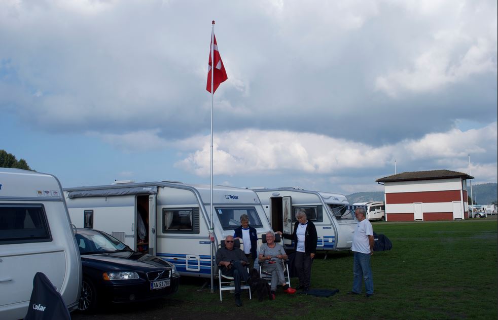 Går man runt kommer man bland annat att hitta registreringsskyltar från Danmark men i år syntes framför allt den högt placerade Dannebrogen. Den danska flaggan är hissad på Lis Kristiansens husvagn och syns över hela campingen. Skratten och de glada rösterna sprider sig lika långt. Flaggan har Lis och hennes vänner satt upp av en enda anledning.