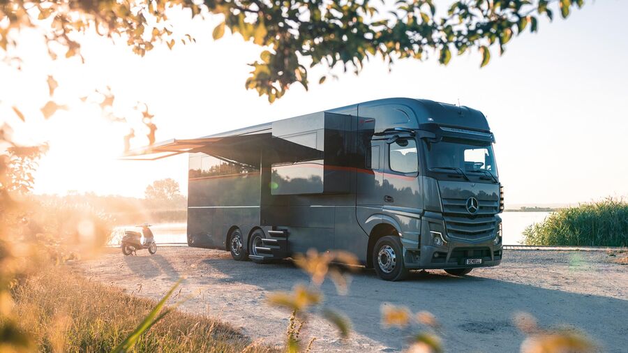 Är du ute efter en riktigt lyxig husbil kan det nya fabrikatet Dembell som byggs på Mercedes Actros med 530 hästkraftersmotorn med en tolvväxlad automatlåda vara ett alternativ. Den tillverkas i tre versioner där den minsta ändå får betraktas som bland det mer spatiösa som finns att välja på, eller vad sägs om att redan minstingen har tre slideout och ett garage vars utrymmen väl räcker för både motorcykel och vanliga elcyklar utöver bord och stolar.