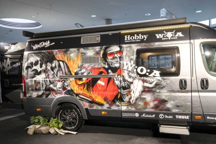 De tog en Hobby De Luxe Edition 440 SF som praktikanter i Hobbys verktad för träsnickeri sedan fick sätta tänderna i. De föll för en design som gick i Heavy-metal stil med namnet Wacken och husvagnen visades upp på olika mässor innan den annonserades ut på eBay. Den mycket ovanliga designen, inte minst den på utsidan, väckte berättigad uppmärksamhet, även om man nu inte är fan av Heavy-Metal.