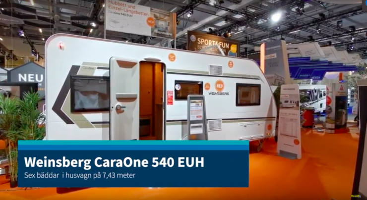 Weinsbergs husvagn CaraOne 540 EUH med en invändig längd på 5,52 meter erbjuder hela sex sovplatser med hjälp av en nedsänkbar säng. Följ med oss in!