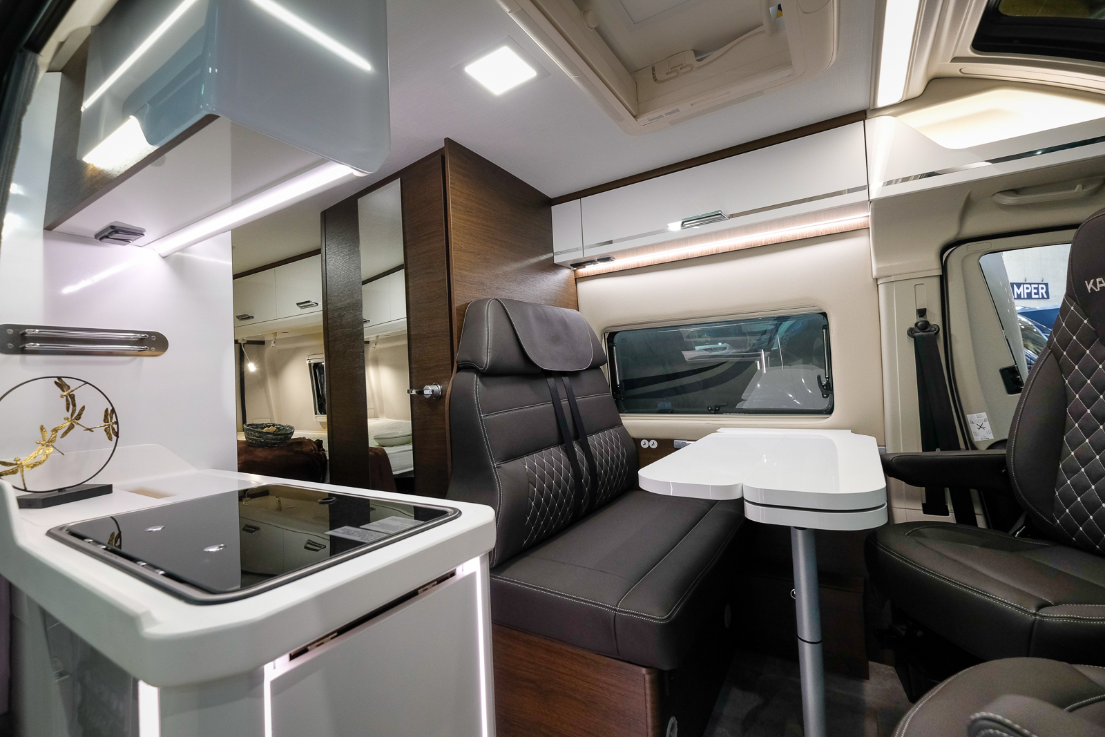 Inredningen går mörkt bruna och ljusa kulörer och det finns gott om belysning. Ytterligare ljus och utsikt får man genom takfönstret fram. Grundpriser på Karman Davies 620 är 599 000 kronor. Ett exemplar som det i bildpelet (missa inte det) kostar runt 650 000 hos importören Autohallenhusbilar.se
