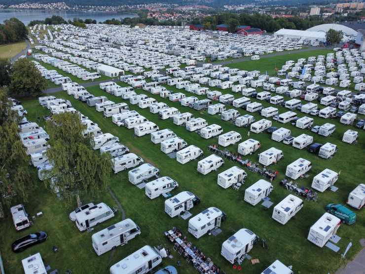 Notera också hur välordnat allting är på den enorma ytan. Tack Caravan Club som håller koll på allt och ser till att det är fyra meter mellan fordonen. För det är avståndet som gäller – även på tillfälliga campingplatser som den här. Läs mer om det här!
