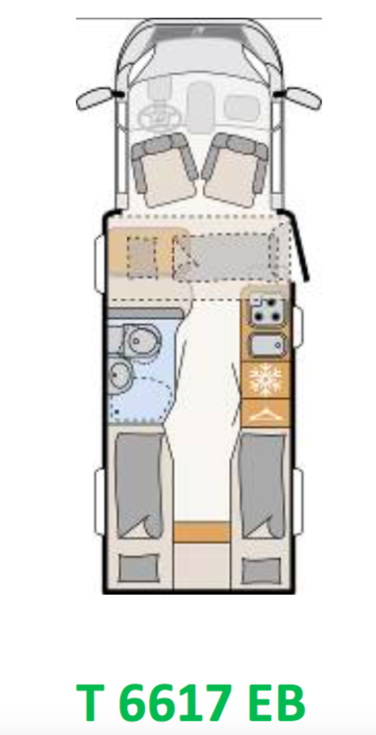 Jämfört med Trend T/I 6717 EB, även det en enkelsängshusbil i den omtyckta husbilsserien med samma mått, har nya T/I 6617 EB ett större badrum inklusive duschkabin. Man får känslan av ett mer öppet rum när man går in i fordonet eftersom siktperspektivet är fritt. Som tillval kan den delintegrerade också beställas med en extra (nedfällbar) enkelsäng. Den integrerade har en nedsänkbar säng för två vuxna som standard.