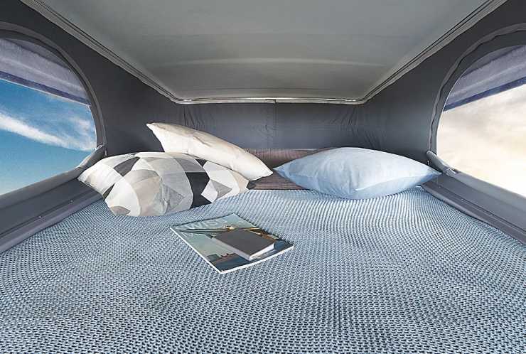 Plåtisen i Ecovip-serien med lyxig klädsel och här en taklucka till tillvalet popup-tak.