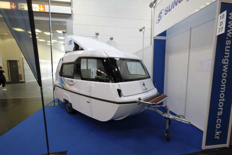 Den 460 centimeter långa, 219 breda och 204 centimeter höga Boat Van har vidare pop-up-tak och väger 740 kilo. Ja, det är väl i princip allt som informationsskylten berättar utöver att de söker återförsäljare i Europa. Tillverkaren Sungwoo kommer från Korea.