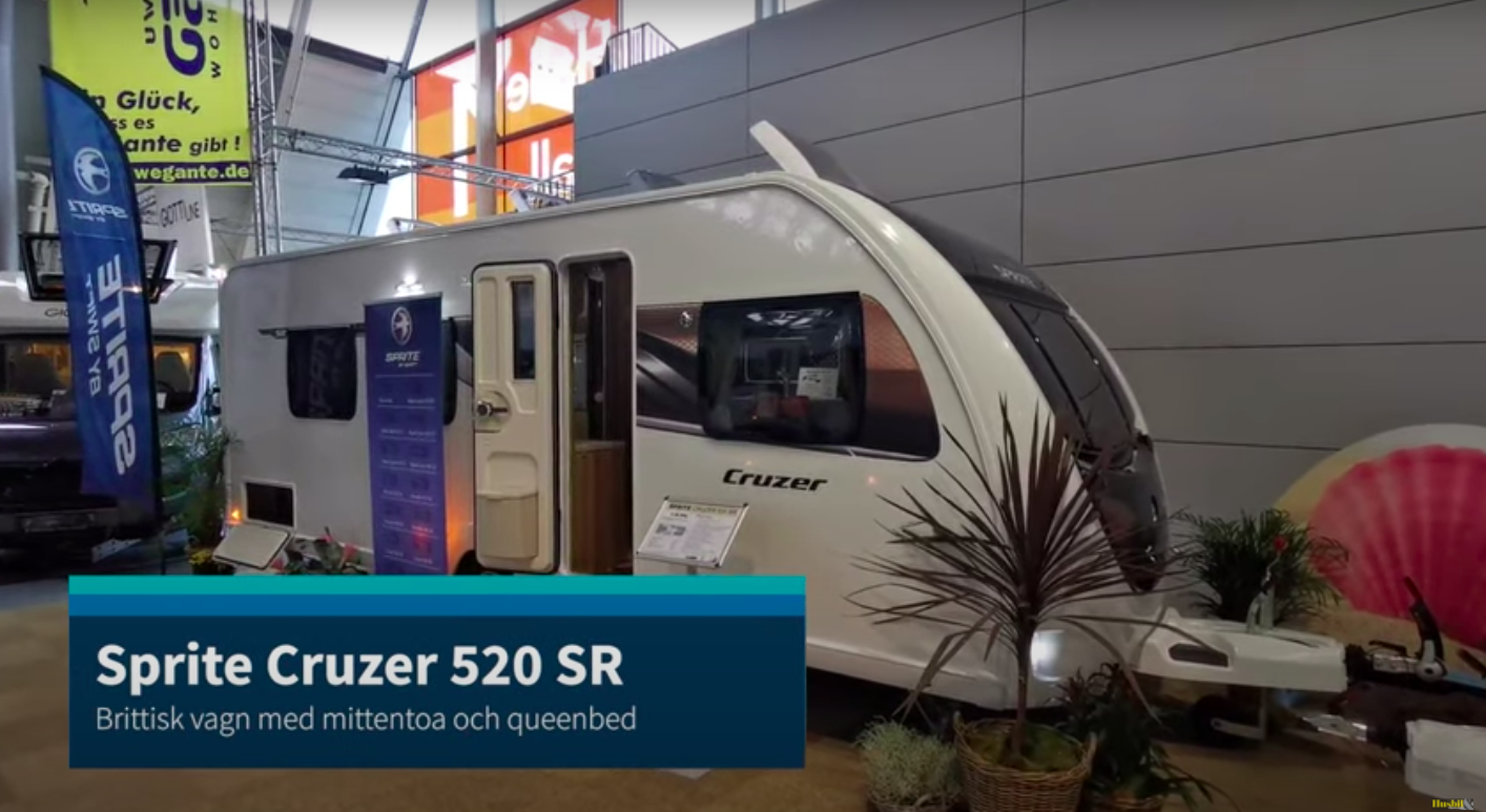 Brittiska husvagnen Sprite Cruzer 520 SR är en vagn med motstående framsoffor på brittiskt vis och välutrustat kök. Det lite ovanliga i den här modellen är den mittplacerade badrummet och den stora dubbelsängen längst bak. Kolla in videon!